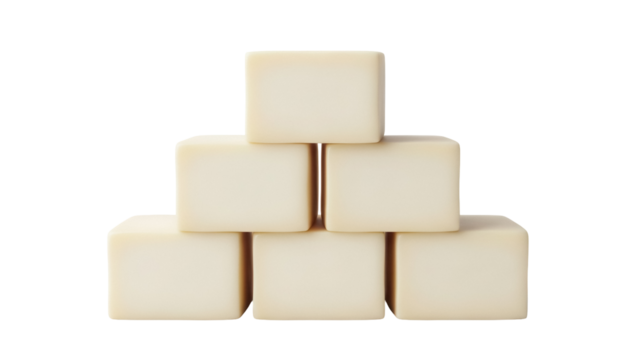 Stack of beige sugar cubes isolated PNG on transparent background, sweet food ingredient for baking and confectionery use, minimalist style
