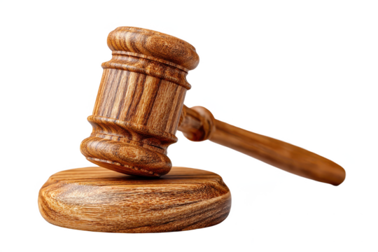 Wooden judge gavel and sound block symbol of justice and law, isolated on transparent background