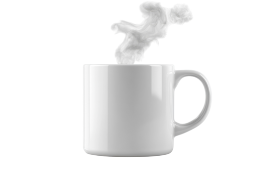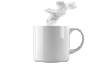 Warm steaming mug perfect for cozy mornings simple white ceramic design clean background
