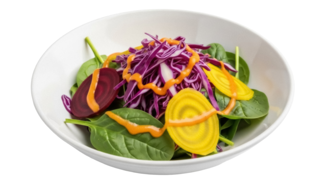 Colorful salad with red cabbage and golden beets isolated PNG, healthy eating concept for restaurant menu and food blog design