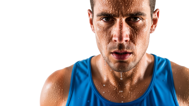 Portrait of a sweating male runner for marathon training articles and endurance blogs Transparent Background, Cutout