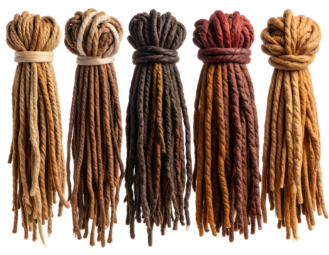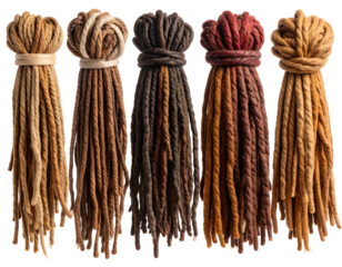 A diverse collection of synthetic dreadlocks showcases a range of colors and textures, perfect for adding an edgy and stylish touch isolated on transparent background