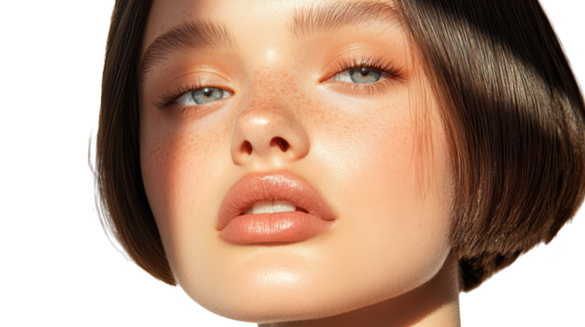 Young woman with curly hair isolated on transparent background