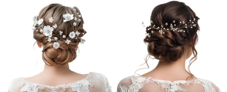 Back view of bride's hairstyle isolated on transparent background