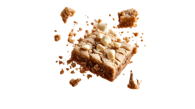 blondie, with chunks of white chocolate isolated on transparent background.