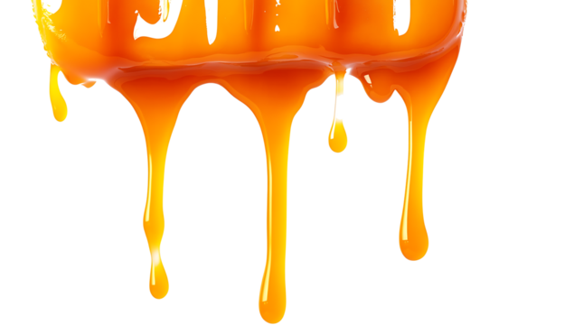 Dripping red liquid effect creating a viscous blood flow or paint drop with transparent background