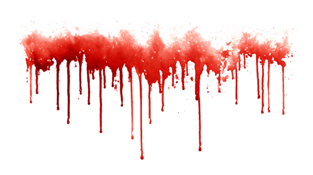 Dramatic Red Blood Splatter and Drops on Transparent Background