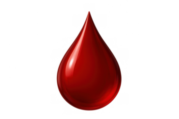 Red blood drop illustrating fluid dynamics, health, donation, and medical concepts on transparent background