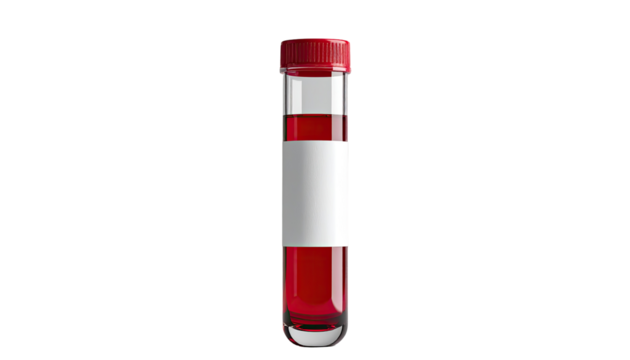 Red liquid-filled test tube with blank label