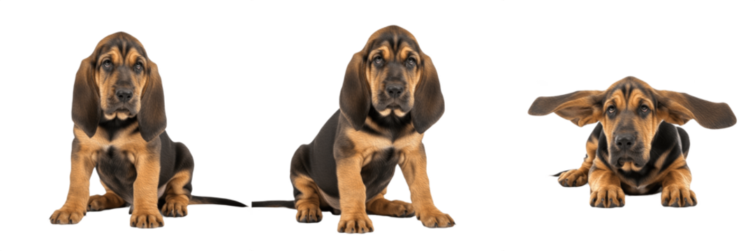 Bloodhound dog puppy isolated on white background. Bloodhound puppy sitting and looking at camera on white background