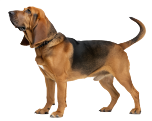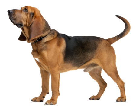 Bloodhound Dog Isolated on White Background, St. Hubert Hound Studio Portrait, Chien de Saint-Hubert, ब्लडहाउंड, Purebred Scent Hound Cutout, Long Eared Hunting Dog, Wrinkled Canine Image.
