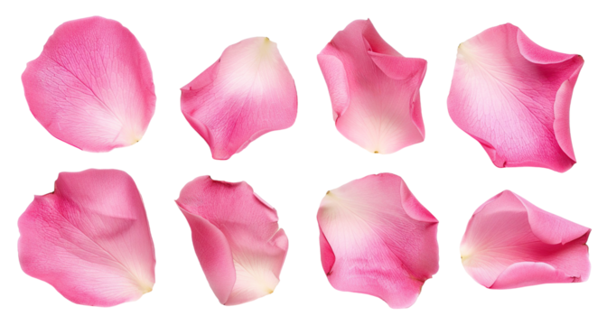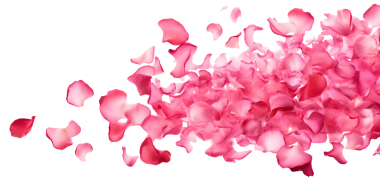 Pink cherry blossom petals falling, scattering on transparent background, delicate spring bloom concept