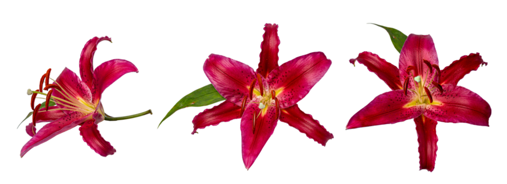 High Quality PNG of three red lily flowers on white background