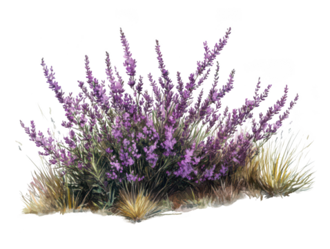 Several mustard plants with bright yellow flowers stand tall against a transparent background