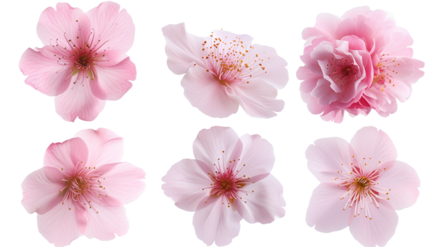 Set of beautiful cherry blossom flowers isolated on transparent background.