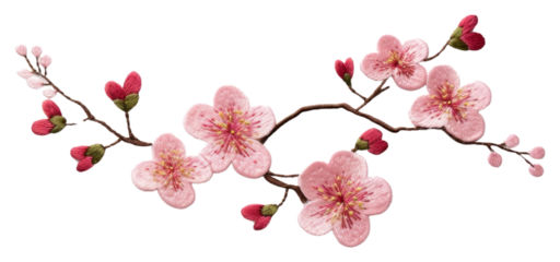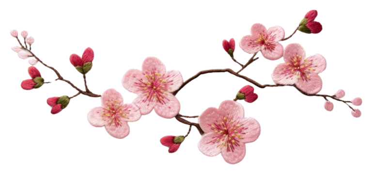 PNG  Cute Cherry blossom in embroidery style flower cherry petal.