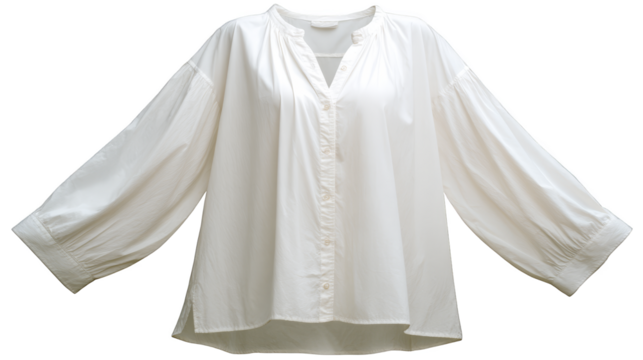 Elegant and timeless white blouse featuring a traditional pointed collar and full length long sleeves isolated on a neutral background to highlight its clean lines and minimalist fashion aesthetic