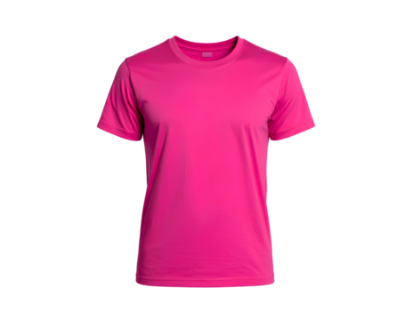 Pink T-shirt template, front and back view, isolated on a transparent background.