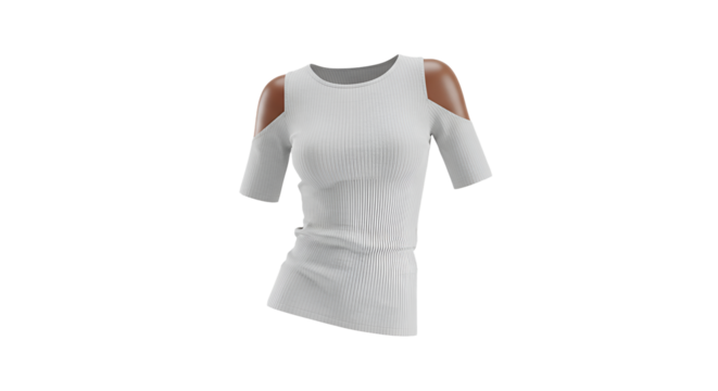 White long-sleeve top with gold necklace, transparent, isolated image.