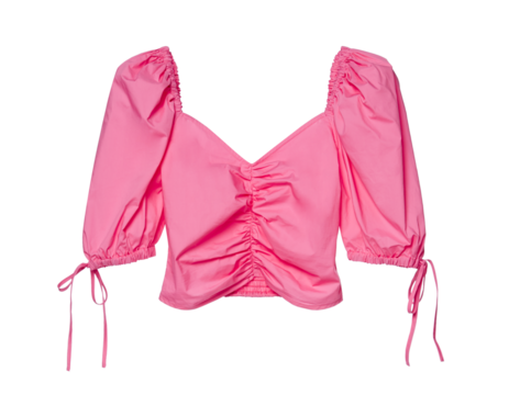 Elegant pink wrap blouse isolated on transparent background, long sleeve top