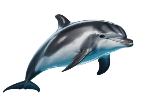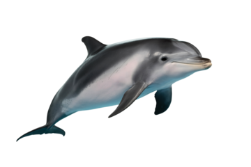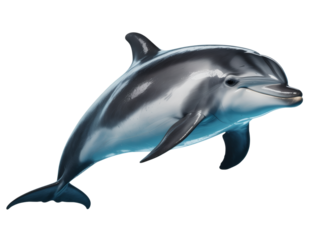 Dolphin in playful leap with soft natural lighting on transparent background for marine life