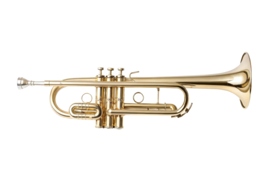 Golden Brass Trumpet with Mouthpiece and Valves PNG Isolated Transparent White Background Download