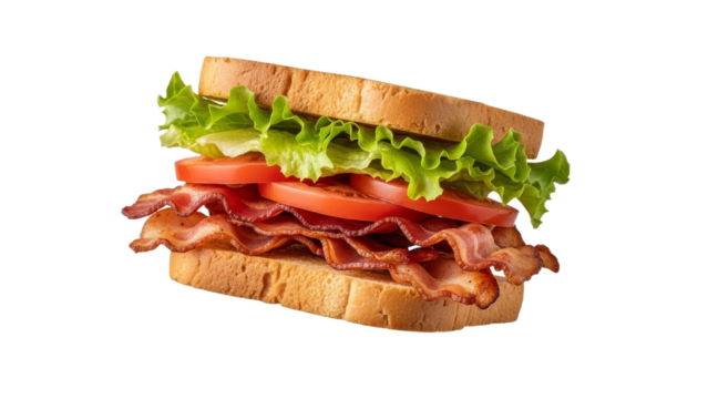 Bacon Lettuce and Tomato Sandwich Isolated on a transparent Background