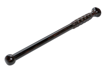 Black wooden baton isolated on white background. Traditional stick for ceremonies, defense, or performance. Glossy finish with engraved details.