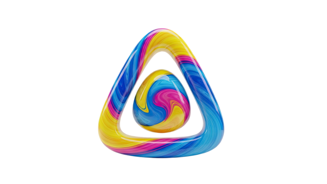 3D Abstract Triangular Shape with Swirling Colors Inside on transparent background