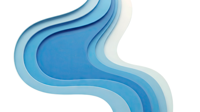 Modern, sleek silver laptop with black keyboard, vibrant blue abstract wave wallpaper, on a reflective white surface, transparent background, minimalist digital technology concept