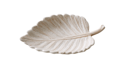 A clay spoon rest shaped like a leaf, white background --ar 16:9