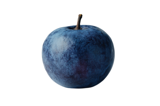 Blue Apple with Stem in Moody Lighting on White Background for Healthy Eating isolated on transparent background