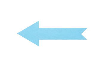 A simple blue arrow pointing left, featuring a distinct triangular tail for direction indication.