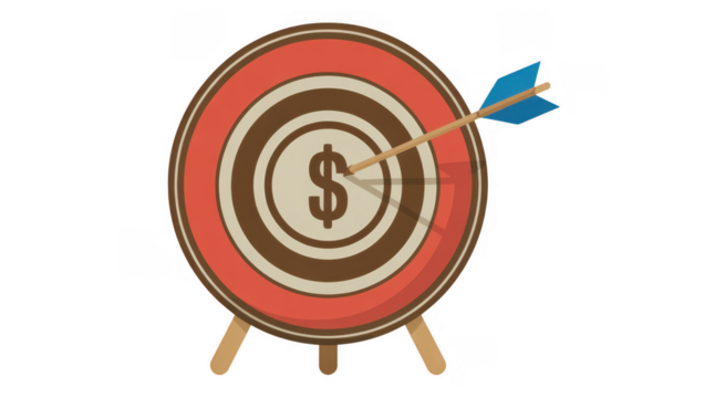 Target with dollar sign hit by blue arrow bullseye isolated on a transparent background