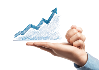 A blue arrow shows an upward trend indicating growth and progress in a business or financial context against a transparent background