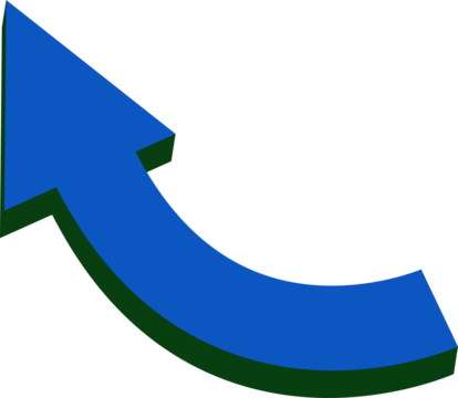A curved blue arrow with a green outline on transparent background