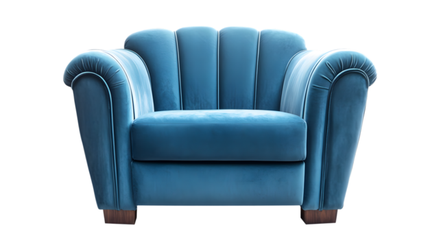 Elegant Classic Armchair in Blue Art Deco Style Isolated on White Background