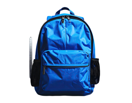 Blue backpack on transparent background, stylish rucksack for travel, cutout