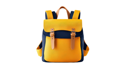 Aesthetic backpacks style. Stylish yellow and blue backpack with straps and buckles.