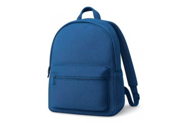 Blue backpack with front pocket over transparent background