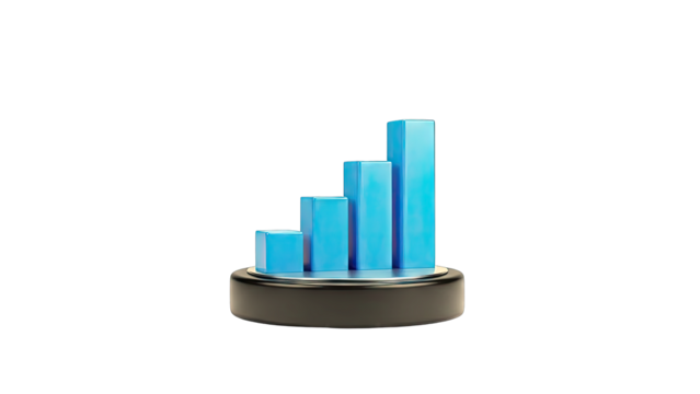 Blue financial bar graph illustration on transparent background