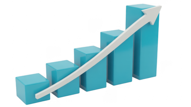 3d bar graph with upward trend arrows isolated on transparent background