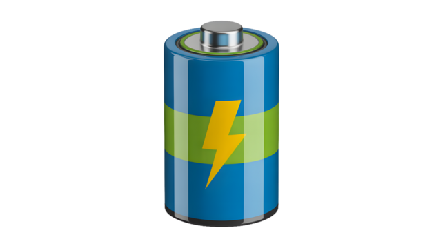 A single blue battery, providing a clean, minimalist image. isolated on transparent background, png.