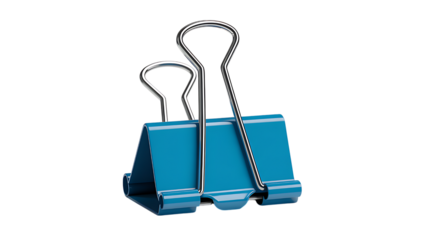 Isolated blue binder clip for organizing papers and holding documents together on desk