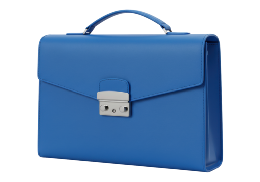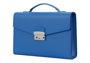 Isolated blue leather briefcase with a handle for carrying important documents or valuables