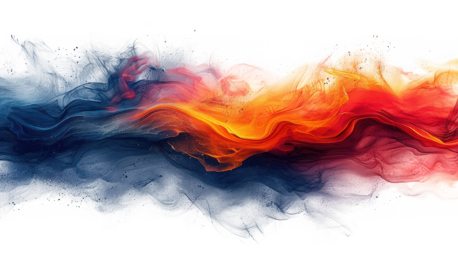 Abstract dynamic colorful explosion of powder and smoke in vibrant red, orange, and blue hues on transparent background