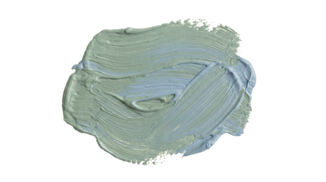 Green and light blue acrylic paint smear with textured layered strokes and soft blended pigment isolated on transparent background