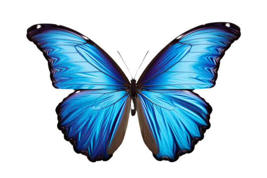 A high-definition, realistic blue butterfly with wings open, isolated on a white background