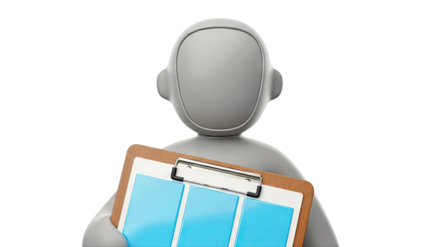 3D illustration of a blue document with charts, sitting on a circle