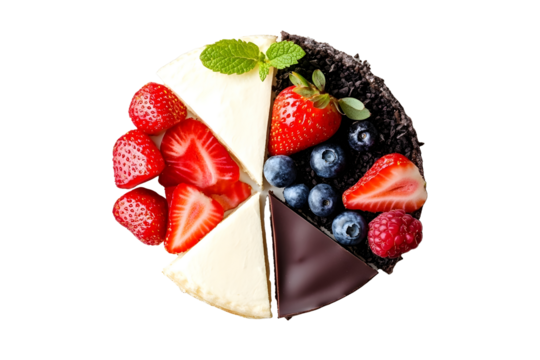 Cherries, Plums, and Lemons in Pastel Paper Bags on Pink Surface on png background